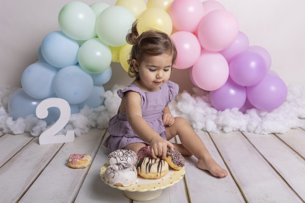 En el estudio dispongo de varios conjuntos, coronas y diademas especiales para sesiones de cumpleaños, con el fin de que no tengáis que preocuparos por nada.