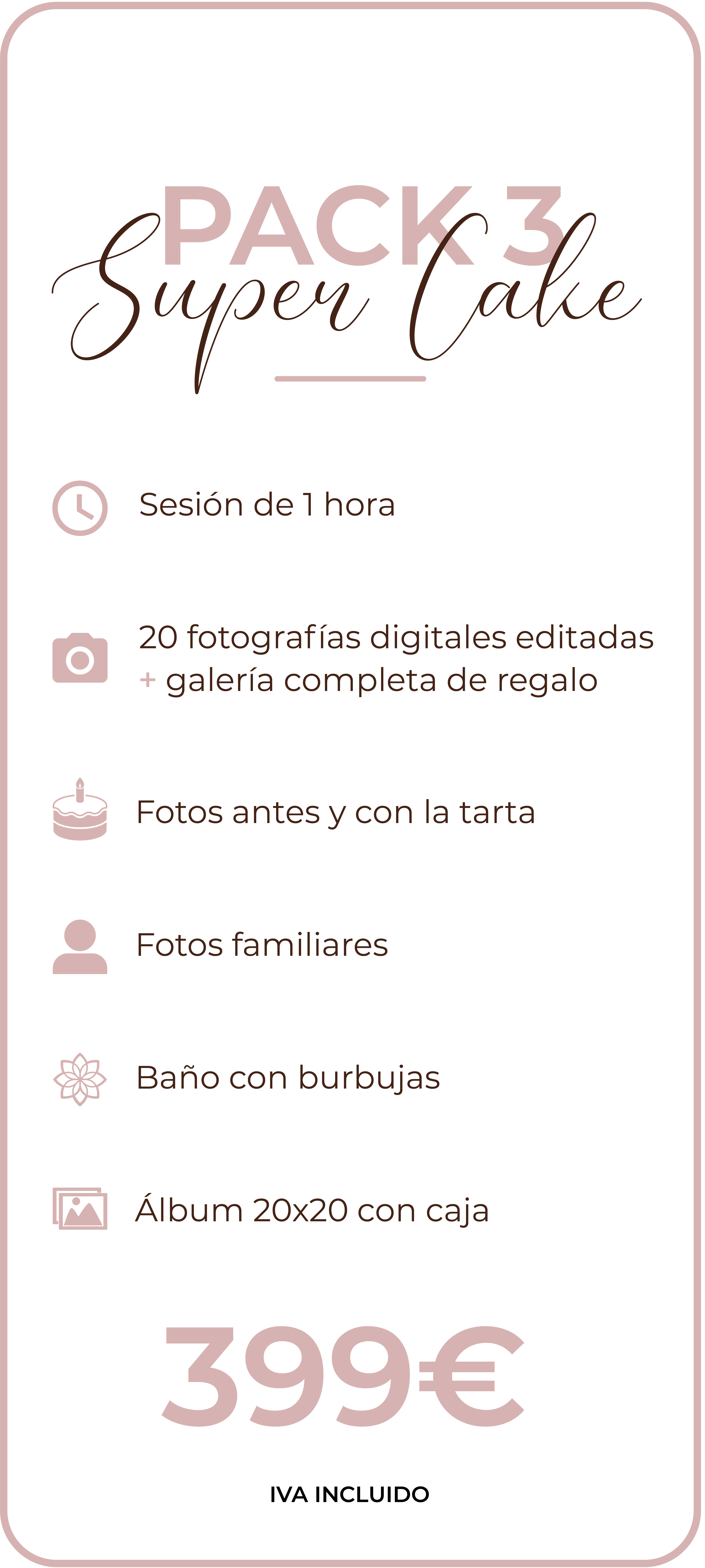 Para reservar tu sesión Smash Cake tendrás que ponerte en contacto conmigo para elegir la fecha y pack de la sesión. Después se realizará una paga y señal de 50€ por bizum o transferencia para confirmar la reserva.