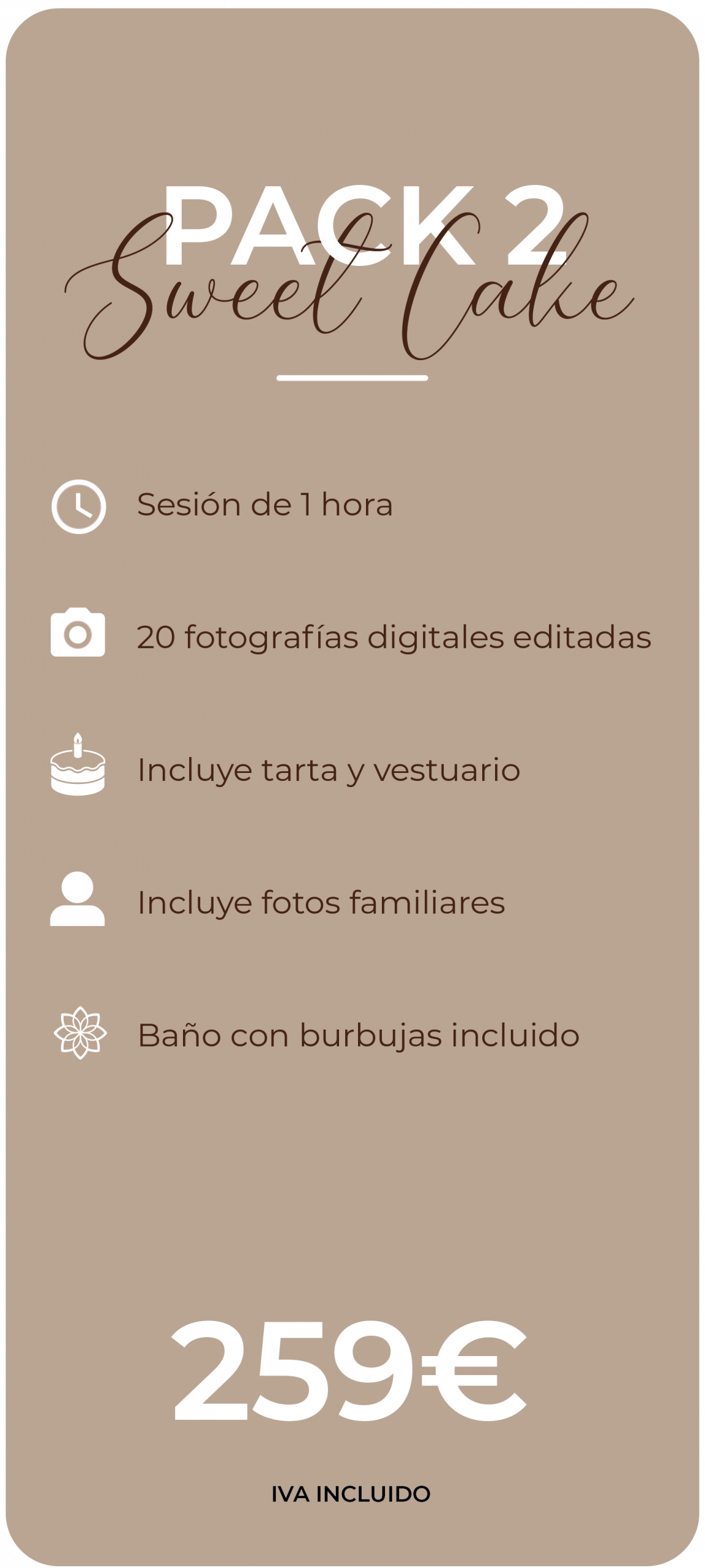 Pastel básico INCLUIDO en el precio de la sesión.